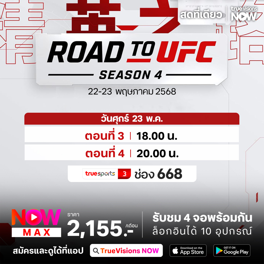 ยูเอฟซี ยืนหนึ่งอย่างยิ่งใหญ่ เหนือทุกรายการของเกมกีฬาต่อสู้ในรูปแบบ เอ็มเอ็มเอ นักสู้ยอดฝีมือทั่วโลกและเอเชีย ต่างก็ต้องการเป็นส่วนหนึ่งของการแข่งขันที่แฟนๆ ทั่วโลกชื่นชอบ หนึ่งในเส้นทางที่มุ่งตรงสู่การเซ็นสัญญากับ ยูเอฟซี ก็คือการพิสูจน์ผลงานในเวที โร้ด ทู ยูเอฟซี ที่เดินทางมาถึงซีซั่นที่ 4 แล้ว สัปดาห์นี้ไปติดตามกันที่นครเซี่ยงไฮ้ ประเทศจีน กับรอบแรก ลุ้นกันว่าใครจะผ่านเข้ารอบต่อไป ชมสด เอ็กซ์คลูซีฟ ครบทุกไฟต์ ที่เดียวที่ ทรูวิชั่นส์