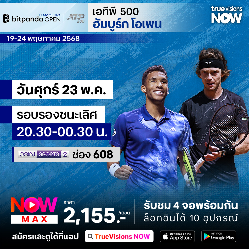 เทนนิสชาย เอทีพี ทัวร์ สัปดาห์นี้พบกับรายการ ฮัมบูร์ก โอเพ่น รายการที่ให้นักเทนนิสระดับโลกได้เตรียมตัวก่อนเข้าสู่การแข่งขัน เฟร้นซ์ โอเพ่น แกรนด์สแลมที่ 2 ของปี โดยการแข่งขันปีนี้ได้มือ 1 ของโลกอย่าง ยานนิค ซินเนอร์ เข้าร่วมการแข่งขัน ร่วมด้วยนักเทนนิสระดับโลกมากันอย่างคับคั่ง ร่วมลุ้นว่าใครจะคว้าแชมป์ไปครอง ชมสด ครบทุกรอบ ที่ ทรูวิชั่นส์
