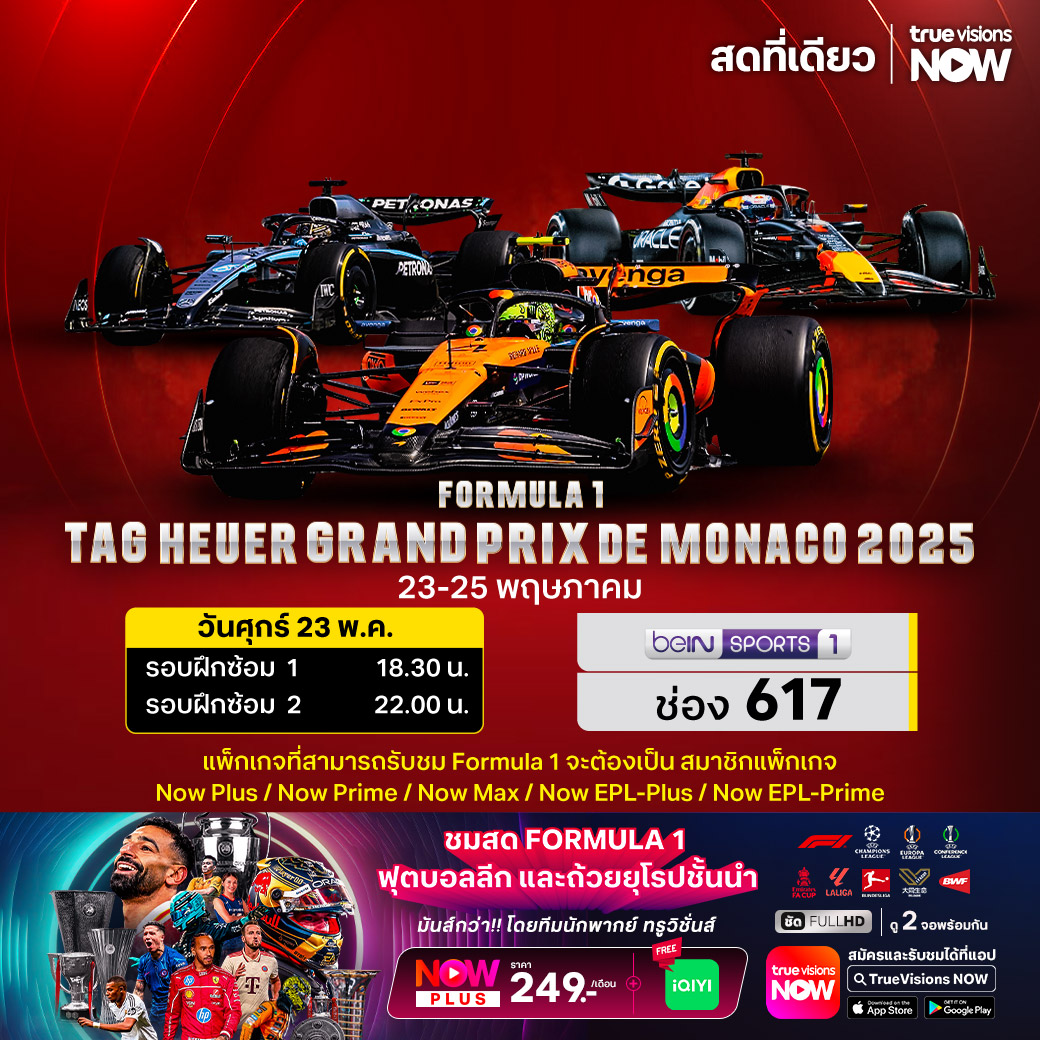 ฟอร์มูล่า วัน เวิลด์ แชมเปี้ยนชิพ สนามที่ 8 กับเรซที่แฟนๆ รอคอย โมนาโก กรังด์ปรีซ์ ที่นักแข่งทุกทีมต้องการเป็นส่วนหนึ่งและลุ้นแชมป์ในรายการที่ชนะยากที่สุดของปี ติดตามทีมระดับโลก แม็คลาเรน, เมอร์เซเดส, เฟอร์รารี่ รวมถึง เร้ด บูลล์ ในการวางกลยุทธ์เพื่อให้ทีมชนะ ชมสด เอ็กซ์คลูซีฟ ครบทุกช่วงแข่งขัน ทีเดียวที่ ทรูวิชั่นส์