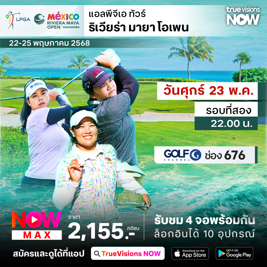 กอล์ฟหญิง แอลพีจีเอ ทัวร์ สัปดาห์นี้ มุ่งหน้าสู่ดินแดนที่เปี่ยมด้วยสีสันและเสน่ห์ของดินแดนจังโก้ กับรายการ เม็กซิโก ริเวียร่า มายา โอเพ่น แอท มายาโคบา 2025 ที่สนาม เอล คามาลีออน กอล์ฟ คอร์ส แอท มายาโคบา ในเมือง ปรายา เดล คาร์เมน คินทาน่า รู ประเทศเม็กซิโก ชิงเงินรางวัลรวม 2,500,000 เหรียญสหรัฐฯ ส่งใจเชียร์โปรสาวไทย ทำสกอร์ลุ้นแชมป์กับโปรแถวหน้าของโลก ชมสด ครบทุกรอบ ที่ ทรูวิชั่นส์