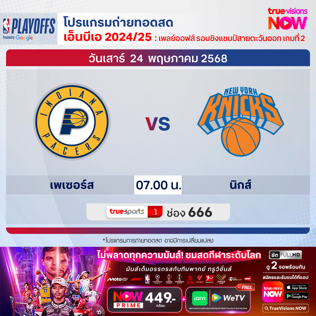 วันเสาร์ 24 พ.ค. Pacers Vs Knicks เวลา 07.00 ทางช่อง TS 1 (666)