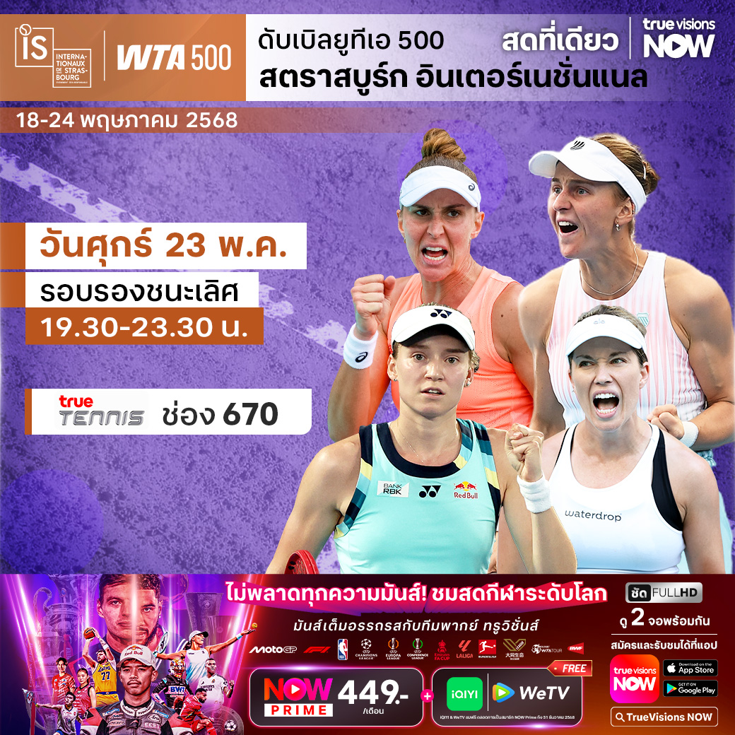 เทนนิสหญิง ดับเบิ้ลยูทีเอ ทัวร์ ลุ้นกันต่อเนื่องกับรายการ สตราสบูร์ก อินเตอร์เนชั่นแนล ที่เมือง สตราสบูร์ก ประเทศฝรั่งเศส รายการที่ให้นักเทนนิสหญิงระดับโลกได้เตรียมตัวก่อนเข้าสู่การแข่งขัน เฟร้นซ์ โอเพ่น แกรนด์สแลมที่ 2 ของปี รายการนี้รวมนักเทนนิสหญิงมือดีเข้าร่วมการแข่งขันแบบจัดเต็ม ร่วมลุ้นว่าใครจะคว้าแชมป์ไปครองในปีนี้ ชมสด ครบทุกรอบ ที่ ทรูวิชั่นส์