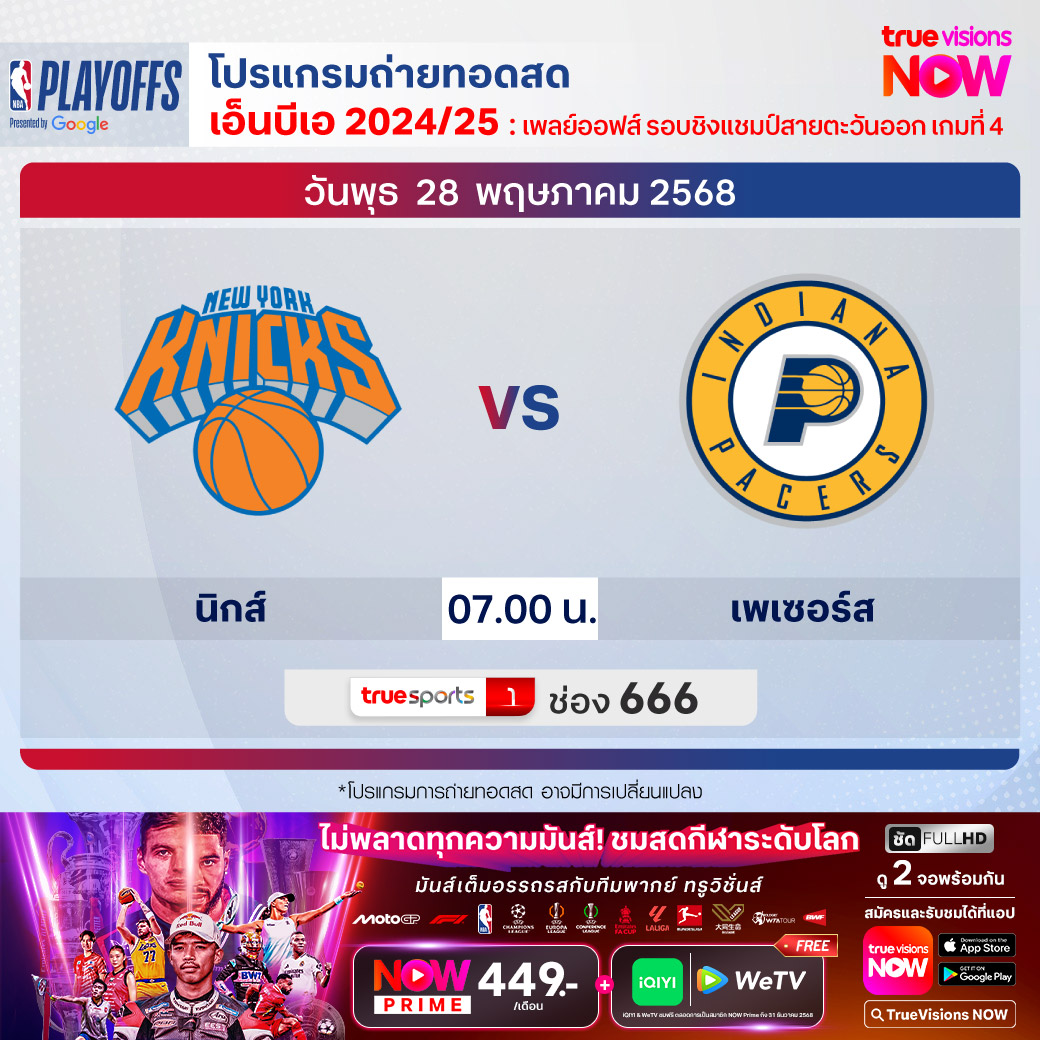 วันพุธ 28 พ.ค. Knicks Vs Pacers เวลา 07.00 ทางช่อง TS 1 (666)