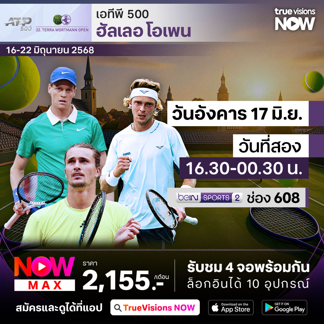 เข้าสู่การแข่งขันเทนนิสคอร์ทหญ้าในฝั่งของเทนนิสชาย สัปดาห์นี้พบกับรายการ ฮัลเลอ โอเพ่น ที่เมืองฮัลเลอ ประเทศเยอรมนีรายการใหญ่ที่ให้นักเทนนิสได้เตรียมตัวก่อนเข้าสู่ วิมเบิลดัน แกรนด์สแลมที่ 3 ของปี บรรดานักเทนนิสมือระดับโลกเข้าแข่งขัน แบบจัดเต็ม นำโดย ยานนิค ซินเนอร์ นักเทนนิสมือวางอันดับ 1 ของโลกชาวอิตาลี และ อเล็กซานเดอร์ ซเวเรฟ นักเทนนิสเจ้าถิ่นชาวเยอรมัน ร่วมลุ้นกันใครจะคว้าแชมป์ไปครอง ชมสด ครบทุกรอบ ที่ ทรูวิชั่นส์