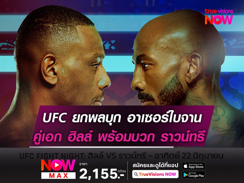 สำหรับศึก UFC FIGHT NIGHT : HILL VS ROUNTREE JR. จะแข่งขันกัน ณ สังเวียน Baku Crystal Hall ,กรุงบากู อาเซอร์ไบจาน ในคืนวันเสาร์ที่ 21 มิถุนายน นี้ คู่หลักของรายการเริ่มเวลา 02.00 น. ตามเวลาประเทศไทย โดยแฟนหมัดมวยชาวไทยติดตามชมได้ทางช่อง TRUE SPORTS HD3 (668)