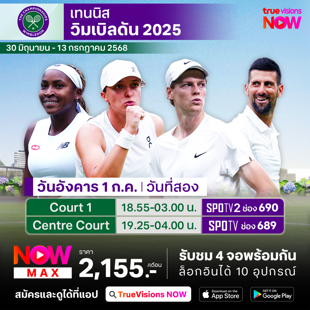 วันนี้มีอะไรดูที่ ทรูวิชั่นส์ ประจำวันอังคารที่ 1 กรกฎาคม 68 ยังคงมีกีฬาที่น่าสนใจให้ได้ตามลุ้นตามเชียร์กันเหมือนเดิม โดยในส่วนของแฟนเทนนิสนั้น พลาดไม่ได้กับศึกเทนนิส แกรนด์สแลม วิมเบิลดัน นอกจากนี้ยังมีศึกฟุตซอลหญิงชิงชนะเลิศแห่งประเทศไทย ให้ได้ตามเชียร์กันต่อเนื่อง งานนี้ ทรูวิชั่นส์ จัดเต็มให้ชมกันถึงบ้าน