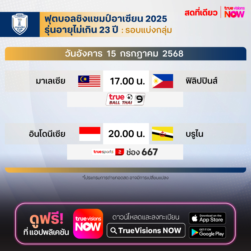 INDONESIA vs BRUNEI เวลา 20.00-22.00 ทางช่อง TS 2 (667)