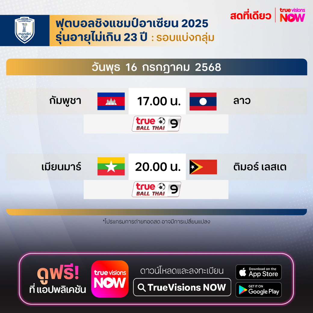CAMBODIA vs LAOS เวลา 17.00-19.00 ทางช่อง True Ball Thai 9