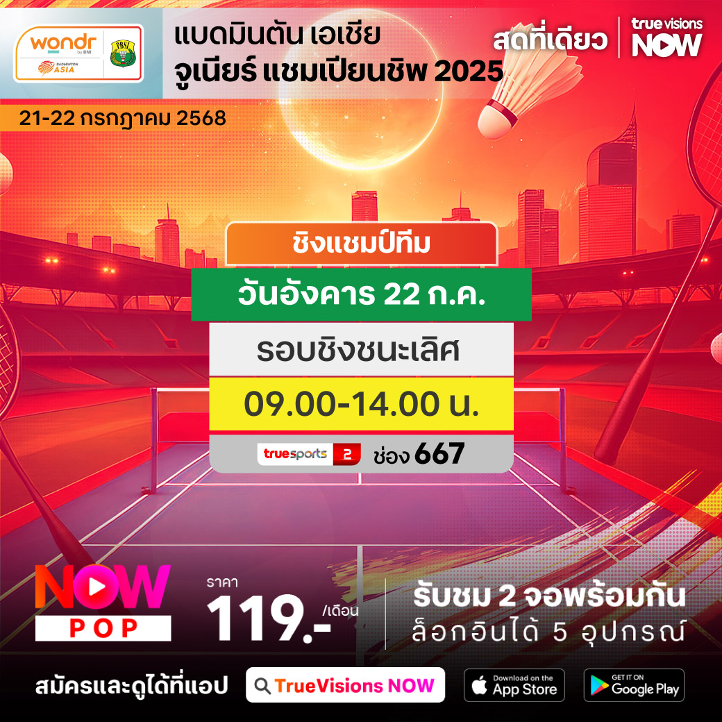 เส้นทางสู่ดาวดังและความสำเร็จในระดับมืออาชีพรออยู่ข้างหน้า จับตาดาวรุ่งพุ่งแรงอนาคตไกล ในการแข่งขัน แบดมินตัน เอเชีย จูเนียร์ แชมเปี้ยนชิพ 2025 รายการที่คัดเอามือดีในระดับท็อปของเยาวชนแห่งชาติมาวัดฝีมือ โดยมีตำแหน่งแชมป์ทวีปเอเชีย ปี 2025 เป็นเดิมพัน ในประเภททีมผสม ชมสด เอ็กซ์คลูซีฟ ที่เดียวที่ ทรูวิชั่นส์