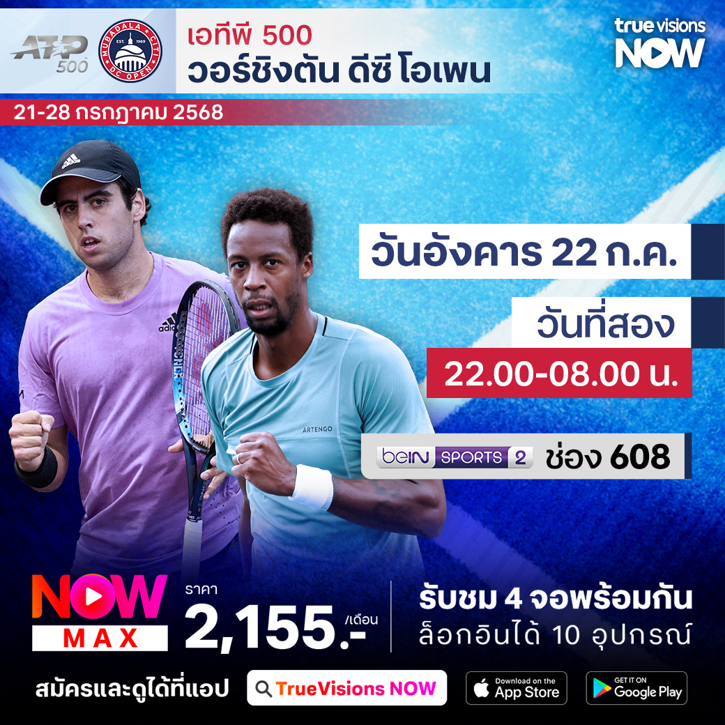 เทนนิสชาย เอทีพี ทัวร์ เริ่มต้นเข้าสู่ช่วงการแข่งขันเทนนิสบนฮาร์ทคอร์ทในทวีปอเมริกาเหนือ กับรายการ วอชิงตัน ดีซี โอเพ่น รายการใหญ่ที่ให้นักกีฬาได้เตรียมตัวก่อนเข้าสู่ศึกแกรนด์สแลมสุดท้ายของปีอย่าง ยูเอส โอเพ่น ร่วมลุ้นกันว่าใครจะคว้าแชมป์รายการนี้ไปครอง ชมสด ครบทุกรอบ ที่ ทรูวิชั่นส์