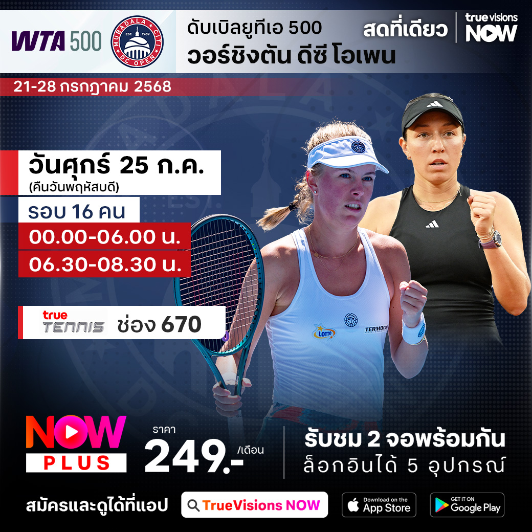 เทนนิสหญิง ดับเบิ้ลยูทีเอ ทัวร์ เริ่มเข้าสู่ช่วงการแข่งขันบนฮาร์ทคอร์ทในทวีปอเมริกาเหนือ สัปดาห์นี้พบกับรายการ วอชิงตัน ดีซี โอเพ่น รายการใหญ่ที่ให้นักกีฬาได้เตรียมตัวก่อนเข้าสู่ศึกแกรนด์สแลมสุดท้ายของปี ยูเอส โอเพ่น ร่วมลุ้นกันว่าใครจะคว้าแชมป์รายการนี้ไปครอง ชมสด ครบทุกรอบ ที่ ทรูวิชั่นส์