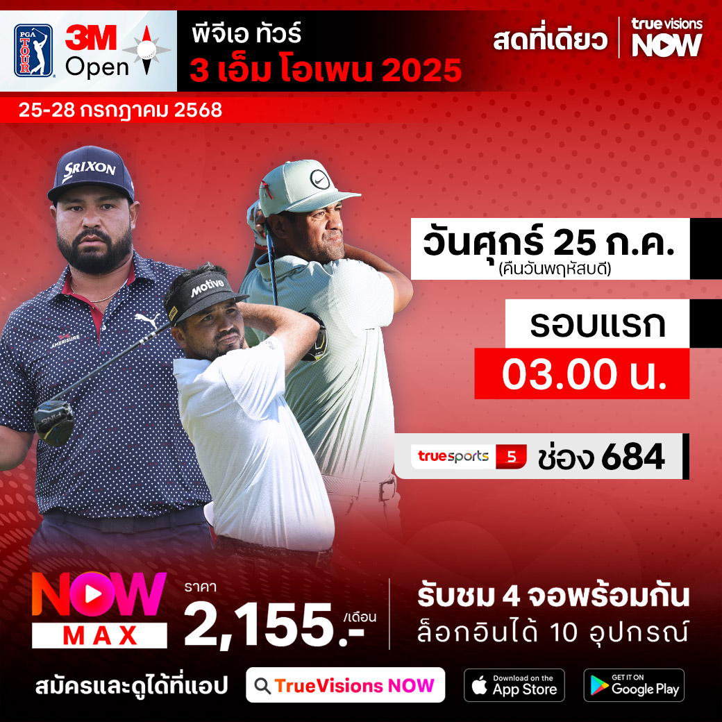จบศึกเมเจอร์สุดท้ายของปีไปหมาดๆ แต่ กอล์ฟ พีจีเอ ทัวร์ ฤดูกาล 2025 ยังเดินหน้าดวลวงสวิงและชิงแชมป์กันต่อเนื่อง สัปดาห์นี้ ไปกันที่ มินเนโซต้า สหรัฐอเมริกา กับการแข่งขัน รายการ 3 เอ็ม โอเพ่น ที่สนาม ทีพีซี ทวิน ซิตี้ ในเมืองเบลน กับเงินรางวัลรวม 8,400,000 เหรียญสหรัฐฯ ใครจะคว้าแชมป์ไปครอง ชมสด เอ็กซ์คลูซีฟ ครบทุกรอบ ที่เดียวที่ ทรูวิชั่นส์