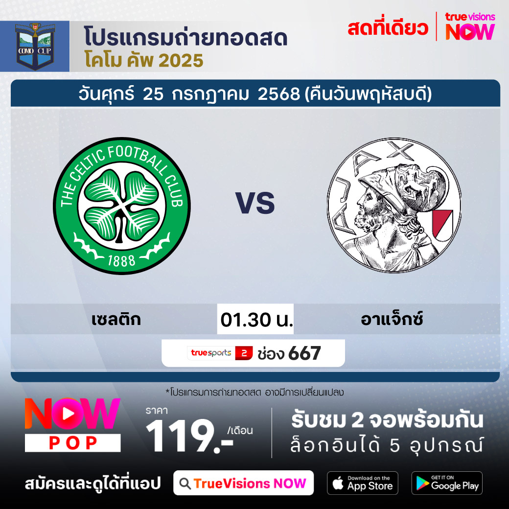 CELTIC VS AJAX เวลา 01:30 - 03:00 ทางช่อง TS 2 (667)