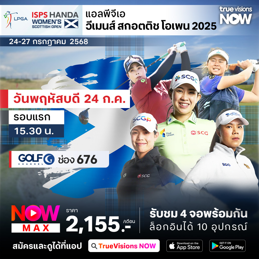 แฟนๆ กีฬากอล์ฟ ต้องติดตามกันให้ได้ สัปดาห์นี้ โปรสาวจากทั่วโลก นัดไปรวมตัวกันที่สกอตแลนด์ เพื่อลงแข่งขัน แอลพีจีเv ทัวร์ รายการ ไอเอสพีเอส ฮันดะ วีเมนส์ สกอตติช โอเพ่น 2025 ที่สนาม ดันโดนัลด์ ลิงค์ส ความท้าทายในรูปแบบ ลิงค์ส คอร์ส ขนานแท้และดั้งเดิม เพื่อเป็นบททดสอบสุดท้ายก่อนไปลุยศึกใหญ่เมเจอร์ปิดท้ายปี วีเมนส์ โอเพ่น ในสัปดาห์หน้า ส่งใจเชียร์โปรสาวไทยไว้ลายลุ้นแชมป์กับโปรต่างชาติ ชมสด ครบทุกรอบ ที่ ทรูวิชั่นส์