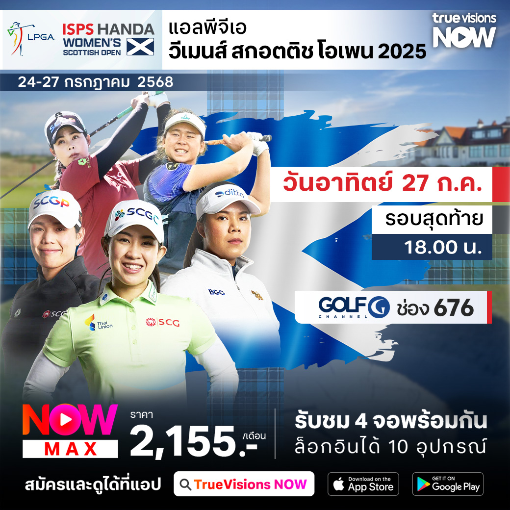แฟนๆ กีฬากอล์ฟ ต้องติดตามกันให้ได้ สัปดาห์นี้ โปรสาวจากทั่วโลก นัดไปรวมตัวกันที่สกอตแลนด์ เพื่อลงแข่งขัน แอลพีจีเv ทัวร์ รายการ ไอเอสพีเอส ฮันดะ วีเมนส์ สกอตติช โอเพ่น 2025 ที่สนาม ดันโดนัลด์ ลิงค์ส ความท้าทายในรูปแบบ ลิงค์ส คอร์ส ขนานแท้และดั้งเดิม เพื่อเป็นบททดสอบสุดท้ายก่อนไปลุยศึกใหญ่เมเจอร์ปิดท้ายปี วีเมนส์ โอเพ่น ในสัปดาห์หน้า ส่งใจเชียร์โปรสาวไทยไว้ลายลุ้นแชมป์กับโปรต่างชาติ ชมสด ครบทุกรอบ ที่ ทรูวิชั่นส์