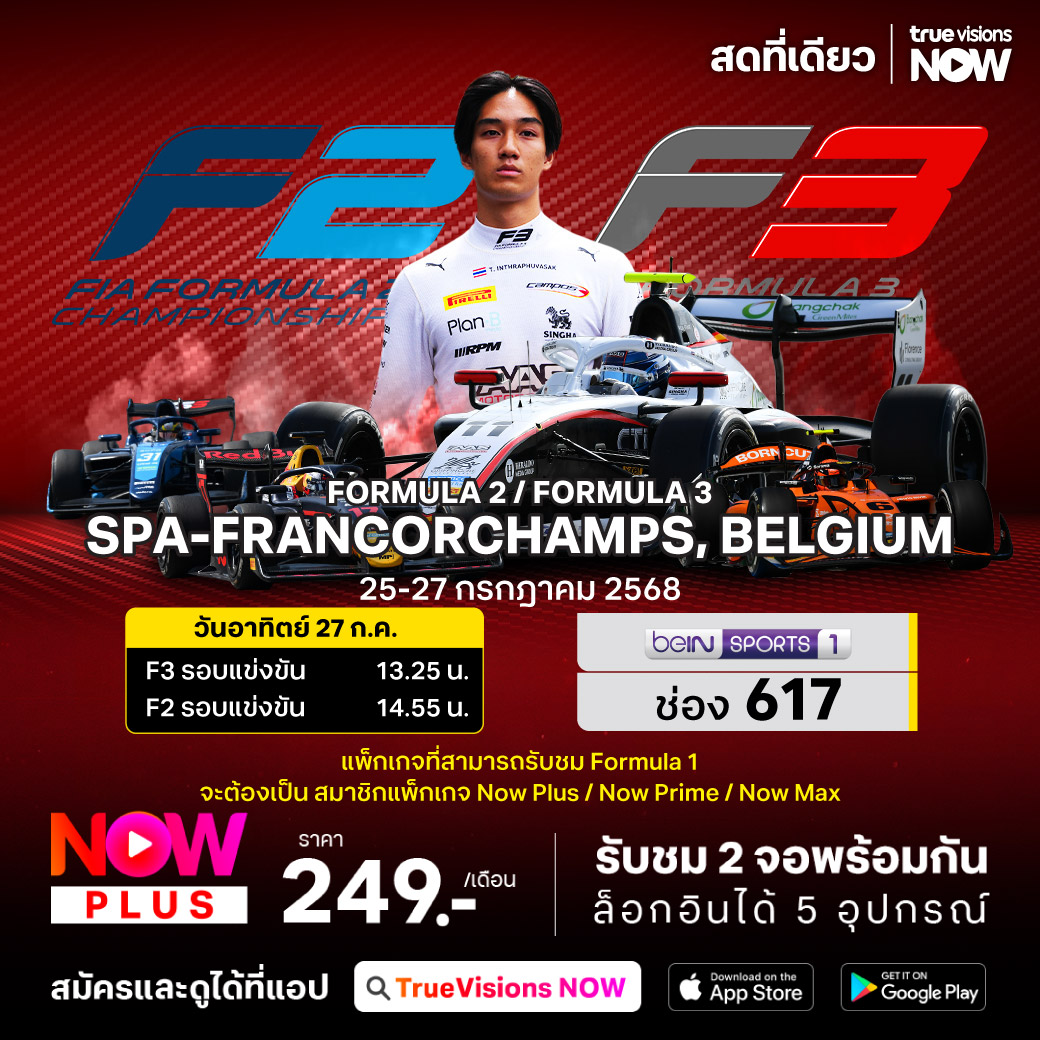 เข้มข้น เร้าใจ และน่าติดตามไม่แพ้รุ่นใหญ่อย่าง ฟอร์มูล่า วัน สัปดาห์นี้ แฟนๆ จะได้สัมผัสประสบการณ์พิสูจน์การเป็นเจ้าความเร็วของ ฟอร์มูล่า 2 และ ฟอร์มูล่า 3 ที่สังเวียน สปา ฟรังคอร์ชองส์ ประเทศเบลเยียม ร่วมเชียร์ ทัศนพล อินทรภูวศักดิ์ นักขับ ฟอร์มูล่า 3 จากไทย และจับตาดูนักแข่งดาวรุ่งของทุกทีมที่พร้อมจะพิสูจน์ฝีมือว่าพวกเขามีดีพอ สำหรับอันดับบนโพเดียมและทำผลงานให้เข้าตาทีมดังๆ ของ ฟอร์มูล่า วัน เพื่ออนาคตที่ยิ่งใหญ่ในวงการมอเตอร์สปอร์ต ชมสด ครบทุกช่วง เอ็กซ์คลูซีฟ ที่เดียวที่ ทรูวิชั่นส์