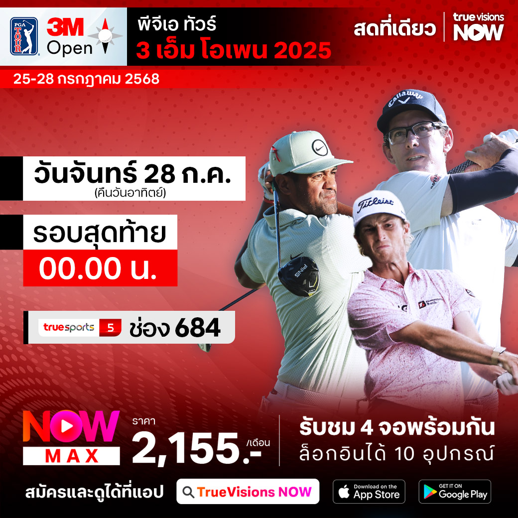 จบศึกเมเจอร์สุดท้ายของปีไปหมาดๆ แต่ กอล์ฟ พีจีเอ ทัวร์ ฤดูกาล 2025 ยังเดินหน้าดวลวงสวิงและชิงแชมป์กันต่อเนื่อง สัปดาห์นี้ ไปกันที่ มินเนโซต้า สหรัฐอเมริกา กับการแข่งขัน รายการ 3 เอ็ม โอเพ่น ที่สนาม ทีพีซี ทวิน ซิตี้ ในเมืองเบลน กับเงินรางวัลรวม 8,400,000 เหรียญสหรัฐฯ ใครจะคว้าแชมป์ไปครอง ชมสด เอ็กซ์คลูซีฟ ครบทุกรอบ ที่เดียวที่ ทรูวิชั่นส์