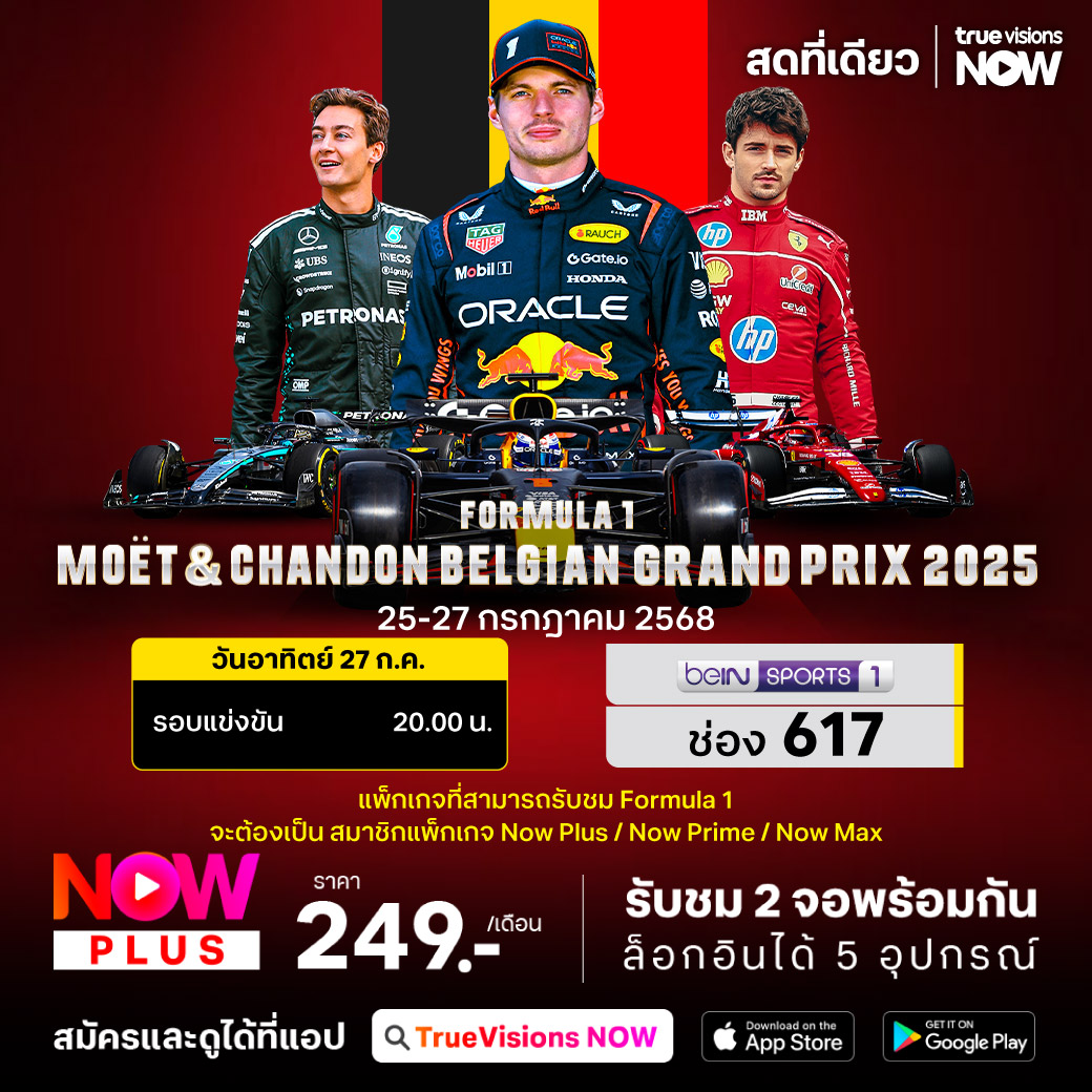ศึก ฟอร์มูล่า วัน เข้าสู่กลางฤดูกาล 2025 แล้ว สัปดาห์นี้ แฟนๆ จะได้ติดตามความมันส์ในรายการ เบลเจี้ยน กรังด์ปรีซ์ ที่สนามสุดท้าทาย สปา ฟรังโคชองส์ ในประเทศเบลเยี่ยม จับตาดูการขับเคี่ยวของสุดยอดนักซิ่งระดับโลกจากทีมชั้นนำอย่าง แม็คลาเรน, เมอร์เซเดส, เฟอร์รารี่ และ เร้ดบูลล์ ใครจะคว้าแชมป์ได้ในรายการนี้ ชมสด เอ็กซ์คลูซีฟ ครบทุกช่วง ที่เดียวที่ ทรูวิชั่นส์