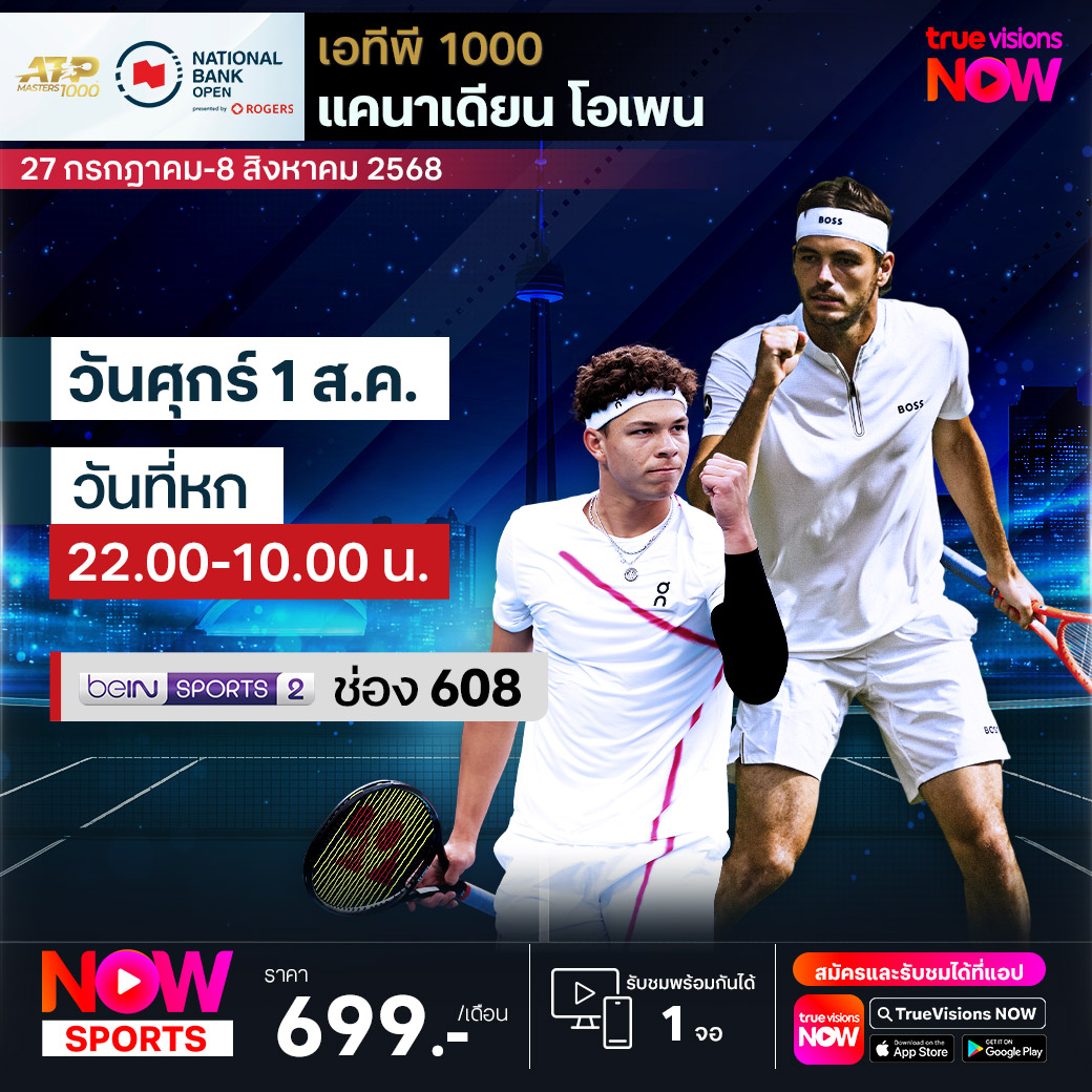 การแข่งขันเทนนิสชายรายการใหญ่ ระดับ ATP 1000 กลับสู่ทวีปอเมริกาเหนืออีกครั้ง กับรายการ แคนาเดียน โอเพ่น ที่ประเทศแคนาดา ถือเป็นรายการใหญ่รายการแรกสำหรับการเตรียมตัวก่อนเข้าสู่การแข่งขันแกรนด์สแลมสุดท้ายของปี ร่วมลุ้นว่านักเทนนิสชายคนไหนจะคว้าแชมป์ไปครอง ชมสด ครบทุกรอบ ที่ ทรูวิชั่นส์