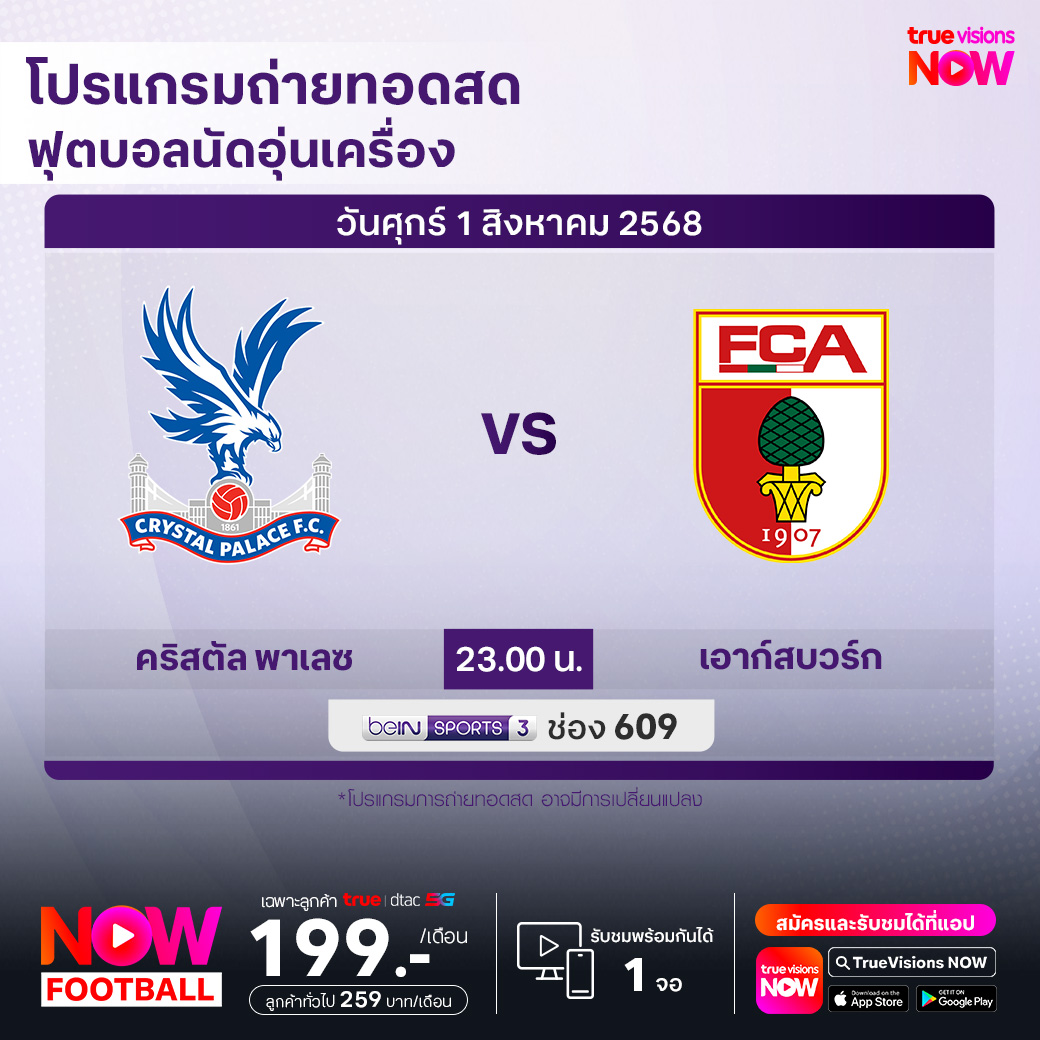 Crystal Palace vs Augsburg เวลา 23.00-01.00 ทางช่อง beIN 3 (609)