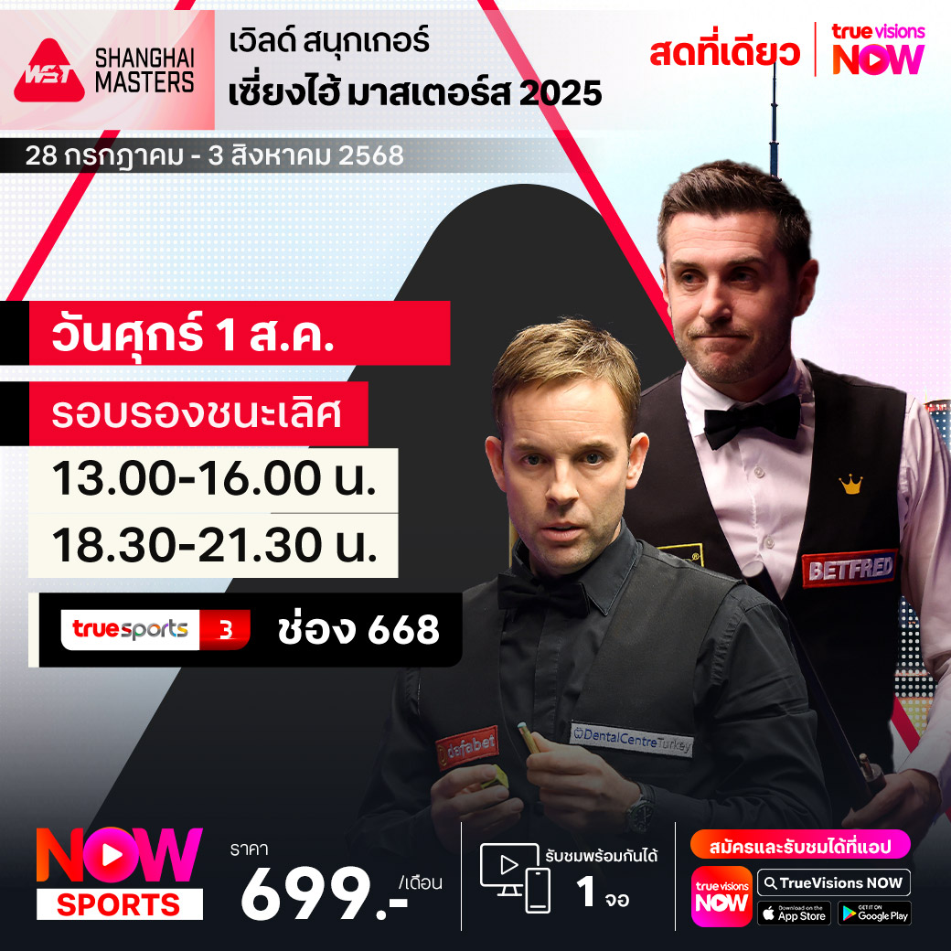 เปิดฤดูกาลใหม่ 2025/26 อย่างเป็นทางการแล้ว สำหรับ เวิลด์ สนุกเกอร์ ทัวร์ แฟนๆ กีฬาสอยคิวจะได้สัมผัสเกมที่สนุก ตื่นเต้น และเร้าใจ กับการออกคิวของสุดยอดมือระดับโลกที่มาลุ้นแชมป์กันอย่างคับคั่ง เปิดหัวกันด้วยรายการ เซี่ยงไฮ้ มาสเตอร์ส 2025 จากนครเซี่ยงไฮ้ ประเทศจีน ปีนี้เจ้าภาพระดมเอามือดีที่สุดที่แฟนๆ ชื่นชอบมาวัดฝีมือกัน ทั้งแชมป์โลกและมือท็อปของ เวิลด์ แรงกิ้ง ชมสด เอ็กซ์คลูซีฟ ครบทุกเฟรม ทุกรอบ ที่เดียวที่ ทรูวิชั่นส์