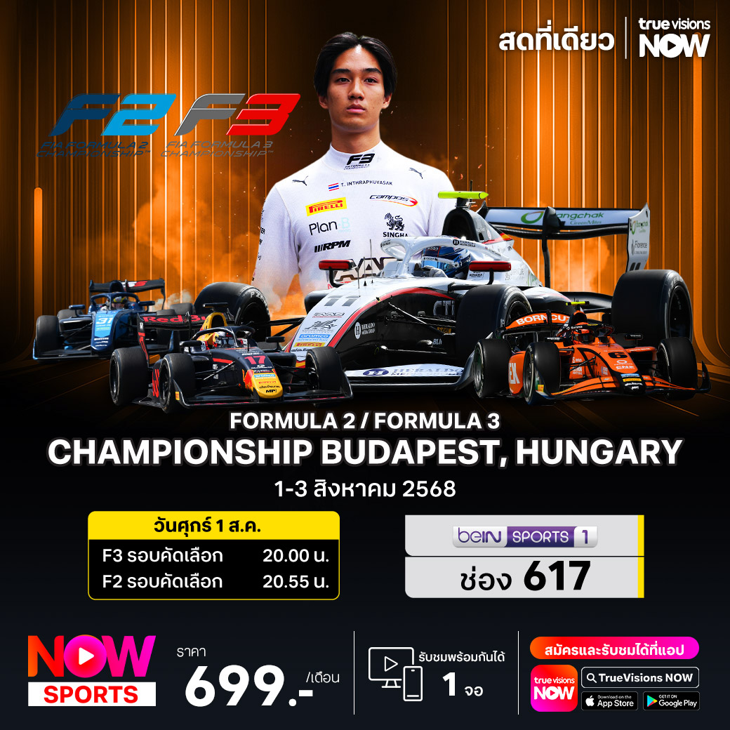 ยังคงเข้มข้นและดุเดือดเสมอ สำหรับการแข่งขัน ฟอร์มูล่า 2 และ ฟอร์มูล่า 3 แชมเปี้ยนชิพ ฤดูกาล 2025 สัปดาห์นี้ ไปสัมผัสการดวลความเร็วของนักแข่งดาวรุ่งจากทั่วโลกของทีมชั้นนำ เพื่อแย่งชิงตำแหน่งบนโพเดียมและเก็บคะแนนสะสมอันล้ำค่า จากสนามฮังกาโรริง เซอร์กิต ในกรุงบูดาเปสต์ ประเทศฮังการี ชมสด เอ็กซ์คลูซีฟ ครบทุกช่วงสำคัญ ที่เดียวที่ ทรูวิชั่นส์