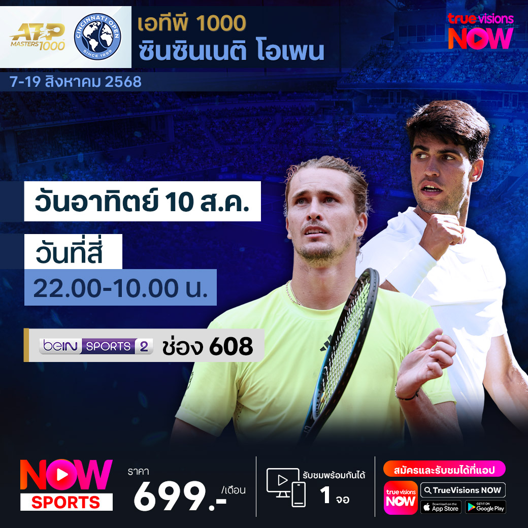 เทนนิสชาย เอทีพี ทัวร์ ระดับ ATP 1000 ยังแข่งขันกันต่อเนื่อง กับรายการ ซินซินแนติ โอเพ่น ที่เมืองซินซินแนติ รัฐโอไฮโอ ประเทศสหรัฐอเมริกา ถือเป็นรายการที่นักกีฬาระดับท๊อปลงแข่งขันกันคับคั่ง เพราะเป็นรายการที่ได้เตรียมตัวก่อนแกรนด์สแลมรายการสุดท้ายของปี ร่วมลุ้นกันว่านักเทนนิสคนไหนจะคว้าแชมป์รายการนี้ไปครอง ชมสด ครบทุกรอบ ที่ ทรูวิชั่นส์
