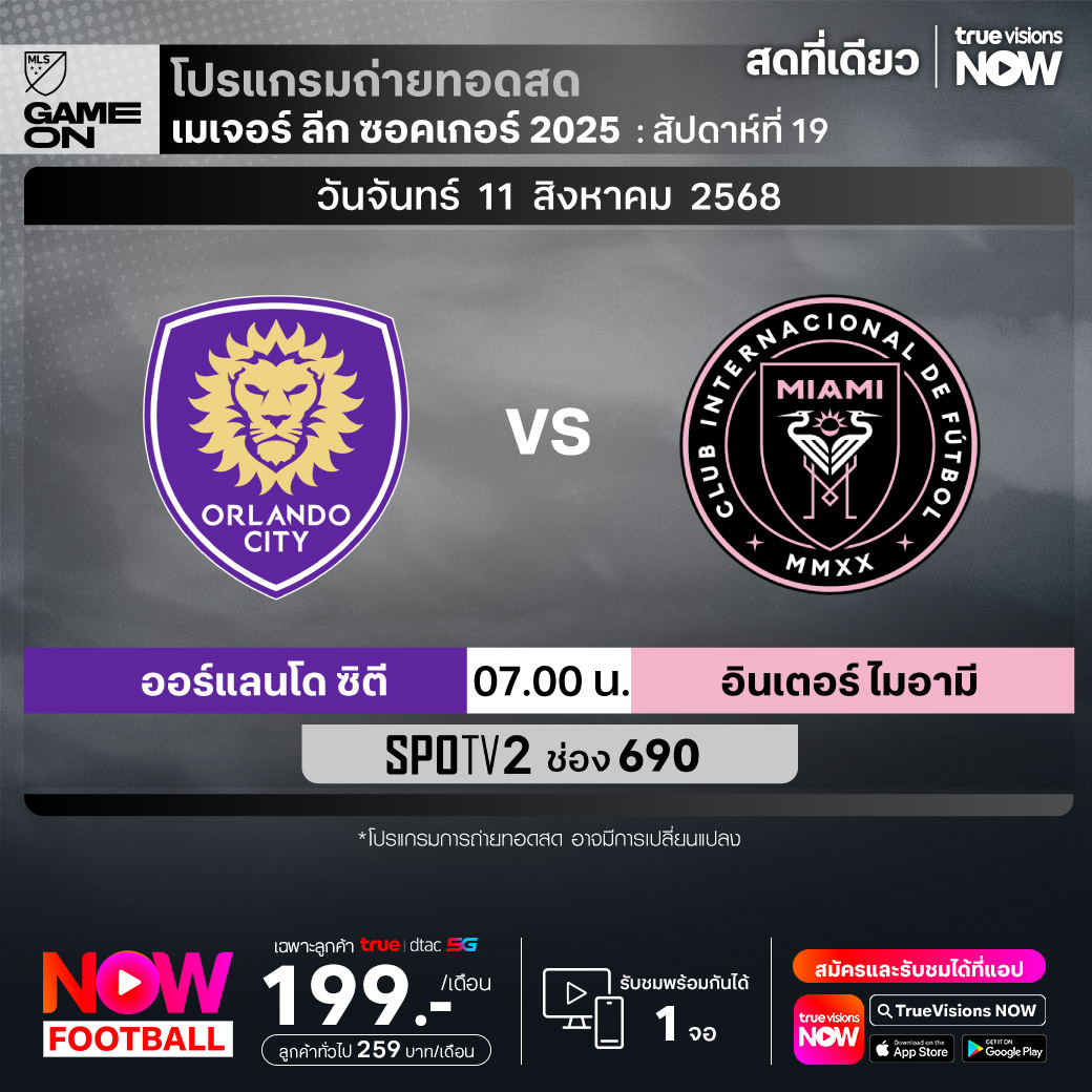 Orlando City vs Inter Miami เวลา 07.00-09.00 ทางช่อง SPOTV2 (690)