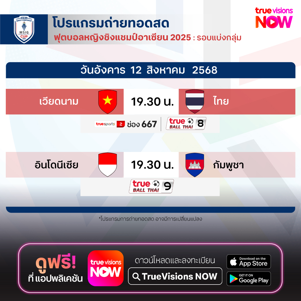 Indonesia vs Cambodia เวลา 19.30-21.30 ทางช่อง True Ball Thai 9