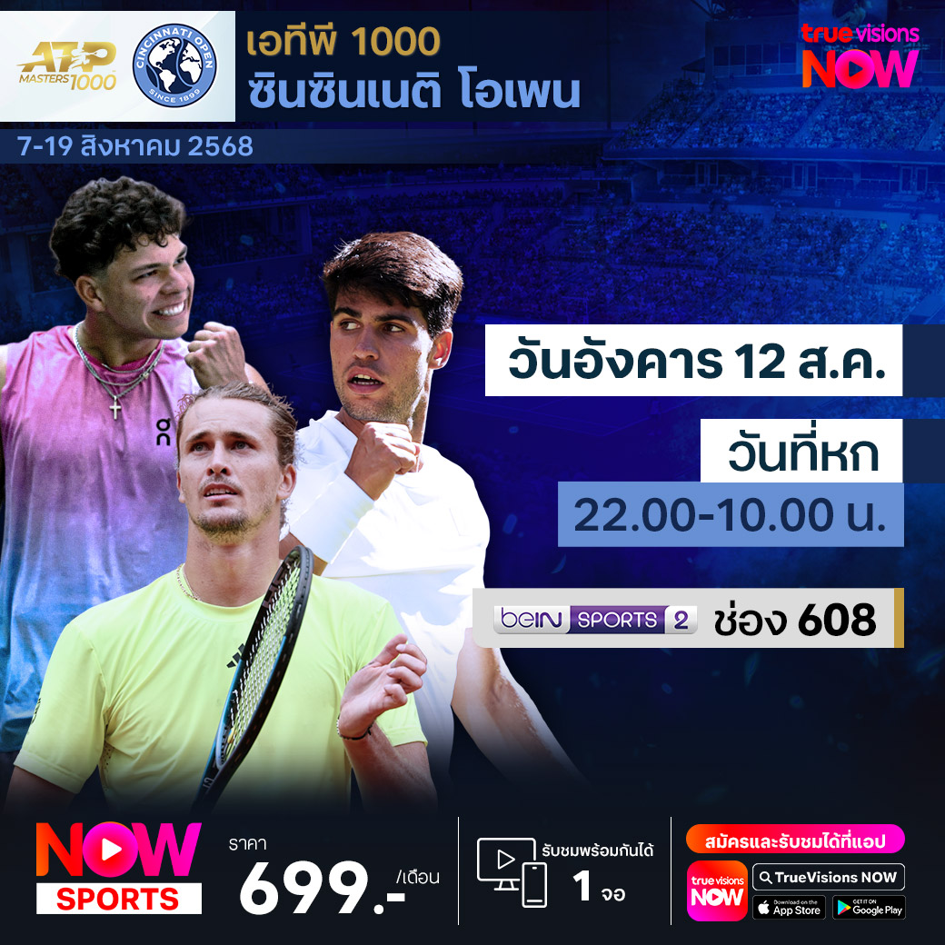 เทนนิสชาย เอทีพี ทัวร์ ระดับ ATP 1000 ยังแข่งขันกันต่อเนื่อง กับรายการ ซินซินแนติ โอเพ่น ที่เมืองซินซินแนติ รัฐโอไฮโอ ประเทศสหรัฐอเมริกา ถือเป็นรายการที่นักกีฬาระดับท๊อปลงแข่งขันกันคับคั่ง เพราะเป็นรายการที่ได้เตรียมตัวก่อนแกรนด์สแลมรายการสุดท้ายของปี ร่วมลุ้นกันว่านักเทนนิสคนไหนจะคว้าแชมป์รายการนี้ไปครอง ชมสด ครบทุกรอบ ที่ ทรูวิชั่นส์