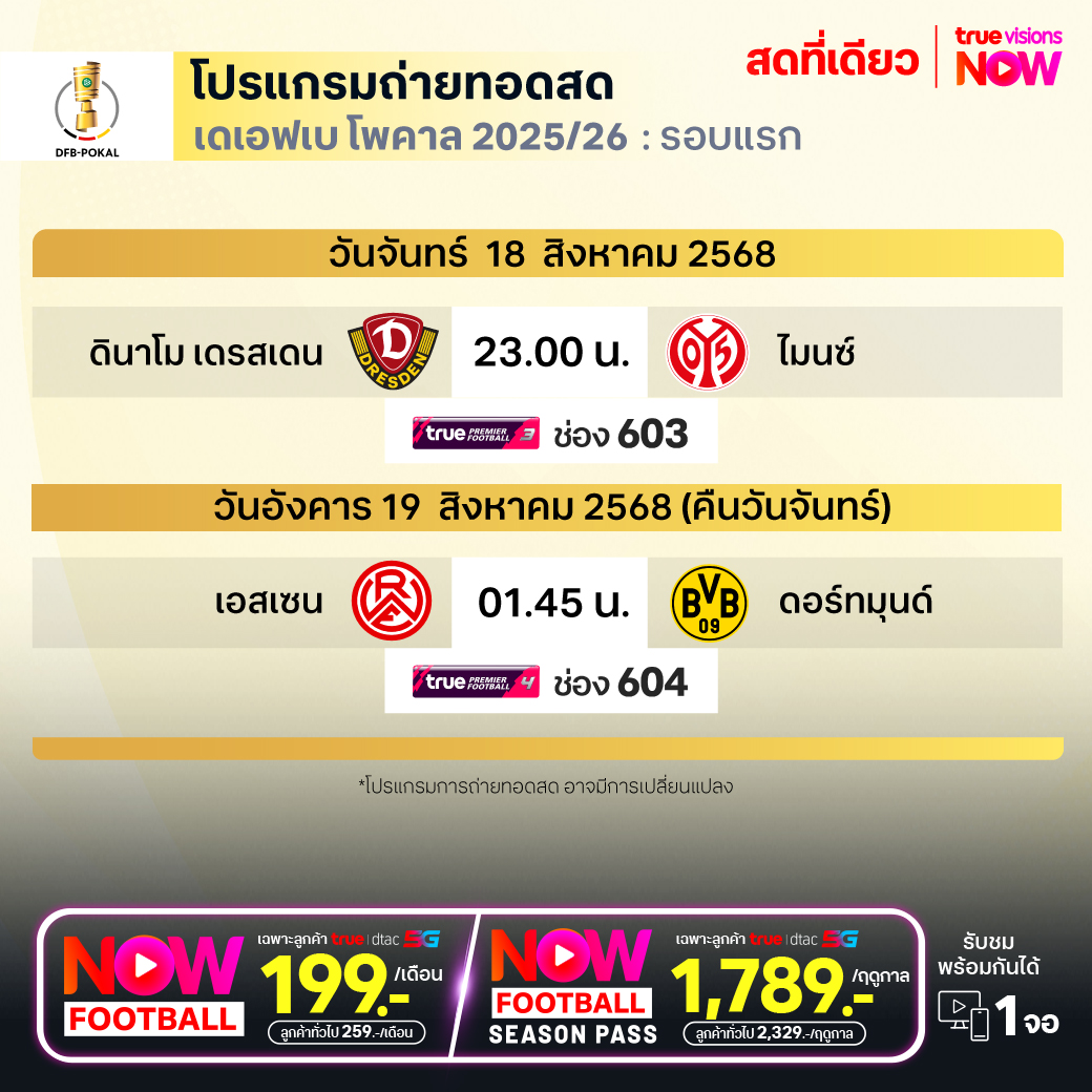 Essen vs Dortmund เวลา 01.45-03.45 ทางช่องTPF 4(604)