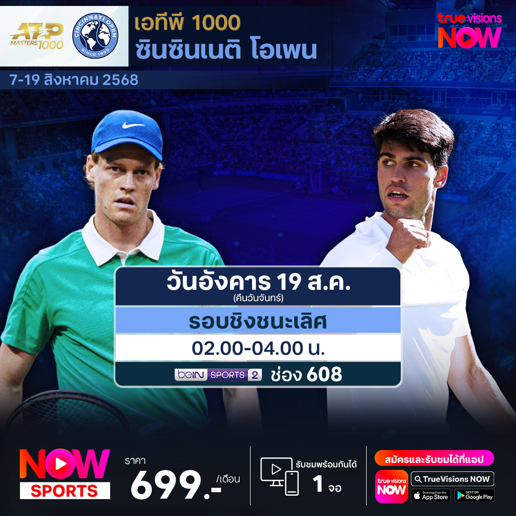 เทนนิสชาย เอทีพี ทัวร์ ระดับ ATP 1000 ยังแข่งขันกันต่อเนื่อง กับรายการ ซินซินแนติ โอเพ่น ที่เมืองซินซินแนติ รัฐโอไฮโอ ประเทศสหรัฐอเมริกา ถือเป็นรายการที่นักกีฬาระดับท๊อปลงแข่งขันกันคับคั่ง เพราะเป็นรายการที่ได้เตรียมตัวก่อนแกรนด์สแลมรายการสุดท้ายของปี ร่วมลุ้นกันว่านักเทนนิสคนไหนจะคว้าแชมป์รายการนี้ไปครอง ชมสด ครบทุกรอบ ที่ ทรูวิชั่นส์