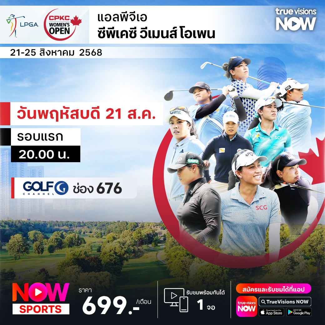 แฟนๆ กอล์ฟหญิงสัปดาห์นี้ พบกับเกมการแข่งขันในประเทศแคนาดากับรายการใหญ่ ซีพีเคซี วีเมนส์ โอเพ่น 2025 ที่สนาม มิสซิสซัวกัว กอล์ฟ แอนด์ คันทรี่ คลับ ในรัฐออนตาริโอ ชิงเงินรางวัลมากถึง 2,750,000 เหรียญสหรัฐฯ ร่วมส่งใจเชียร์โปรสาวไทย งัดฟอร์มเก่ง ทำสกอร์แข่งกับโปรสาวระดับท็อปๆ ของทัวร์ เพื่อลุ้นถึงตำแหน่งแชมป์ ชมสด ครบทุกรอบ ที่ ทรูวิชั่นส์