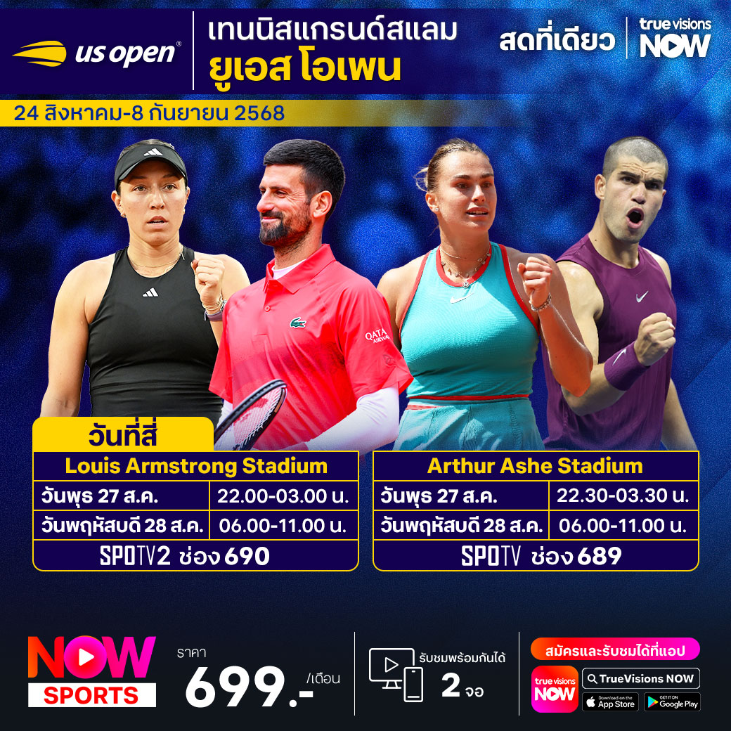 เทนนิสแกรนด์สแลมสุดท้ายของปี ยูเอส โอเพ่น แกรนด์สแลมที่ยิ่งใหญ่ที่สุดในแง่ของจำนวนคนดูและเงินรางวัล จากมหานครนิวยอร์ก ประเทศสหรัฐอเมริกา ร่วมลุ้นกันว่าแชมป์เก่าประเภทชายเดี่ยวและแชมป์เก่าในประเภทหญิงเดี่ยวจะสามารถป้องกันแชมป์ไว้ได้หรือไม่ ชมสด ครบทุกรอบ เอ็กซ์คลูซีฟ ที่ ทรูวิชั่นส์ ที่เดียว