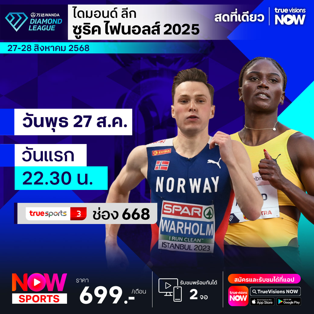 ปิดท้ายฤดูกาล 2025 กับการแข่งขันกรีฑาลู่และลานระดับโลก วานด้า ไดมอนด์ ลีก แฟนๆ จะได้ตื่นตาตื่นใจกับลีลาการระเบิดฟอร์มที่สุดยอดเพื่อพิชิตคู่แข่ง ในการก้าวขึ้นสู่ตำแหน่งแชมป์และลุ้นรางวัลโบนัสมหาศาล ที่จะมีการมอบให้แชมป์ตัวจริงหลังจบการแข่งขันสัปดาห์นี้ ชมสด จุใจ สองวันเต็ม เอ็กซ์คลูซีฟ ที่ทรูวิชั่นส์ ที่เดียว