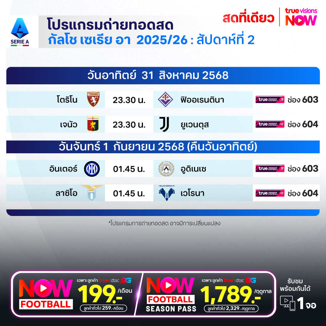 Genoa vs Juventus เวลา 23.30-01.30 ทางช่องTPF 4(604)