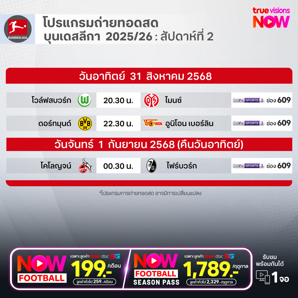 Cologne vs Freiburg เวลา 00.30-02.30 ทางช่อง beIN 3 (609)