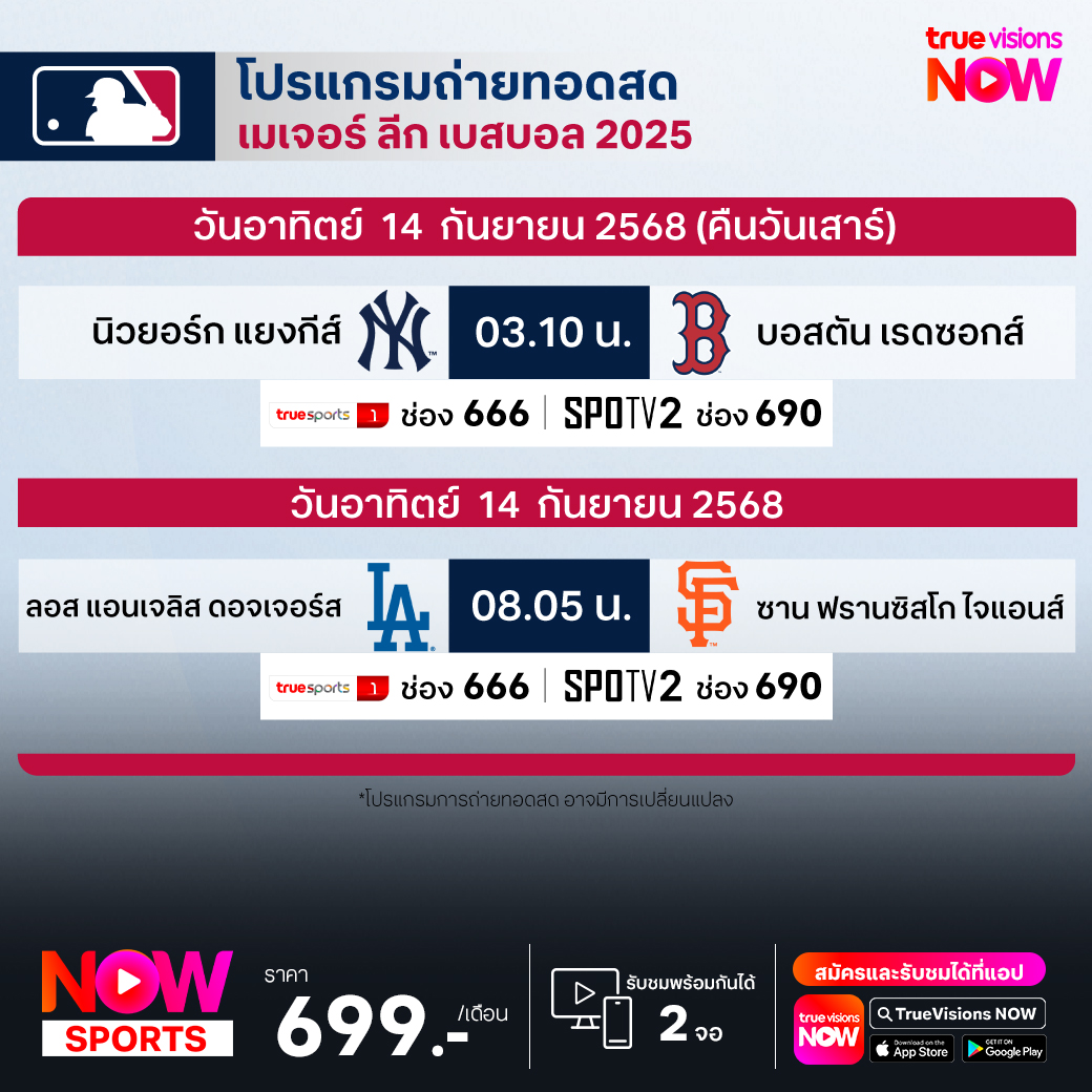 New York Yankees Vs Boston Redsox เวลา 03.10 ทางช่อง TS 1 (666) /SPOTV2 (690)