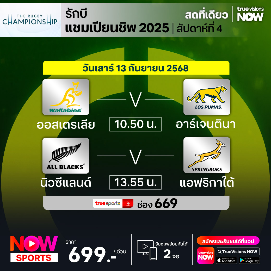 นิวซีแลนด์ พบ แอฟริกาใต้ เวลา 13.55 ทางช่อง TS 4 (669)