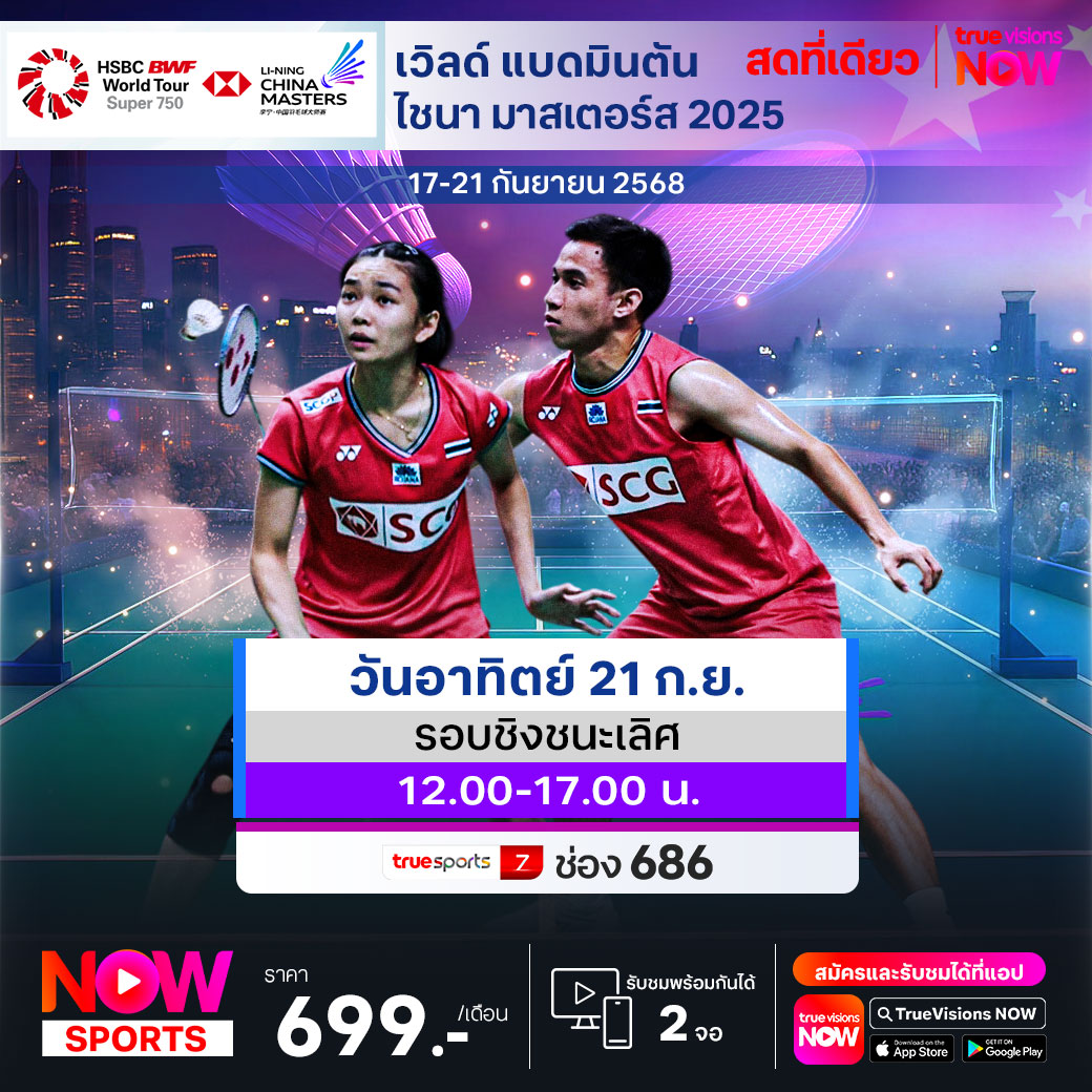 เวิลด์ แบดมินตัน รายการเก็บคะแนนสะสมโลก ไชน่า มาสเตอร์ส รายการระดับ เวิลด์ ทัวร์ ซูเปอร์ 750 ที่เมืองเสิ่นเจิ้น ประเทศจีน ในรอบชิงชนะเลิศ เอาใจช่วยประเภทคู่ผสม “บาส” เดชาพล พัววรานุเคราะห์ และ “เฟม” ศุภิสรา เพียวสามพราน โชว์ฟอร์มพิชิตคู่แข่งระดับโลก เพื่อคว้าแชมป์ในรายการนี้ให้ได้ ชมสด ที่ ทรูวิชั่นส์