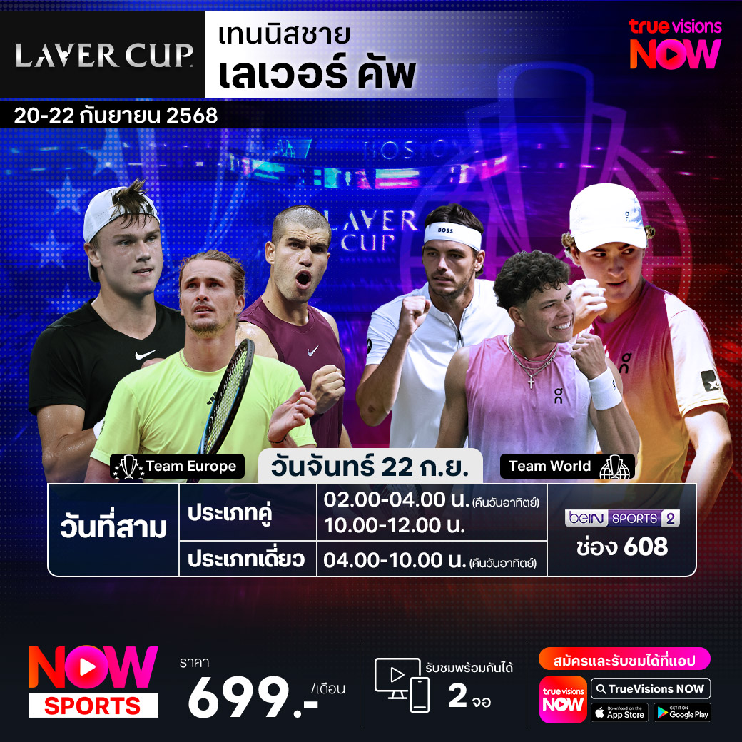 เทนนิสทีมชายรายการพิเศษชิงแชมป์โลก เลเวอร์ คัพ การปะทะกันระหว่างทีมยุโรป พบ ทีมเวิลด์ จากสนาม เชส เซนเตอร์ ใจกลางเมือง ซาน ฟรานซิสโก รัฐแคลิฟอร์เนีย ทีมยุโรปนำทีมโดย คาร์ลอส อัลคาราซ จากสเปน, อเล็กซานเดอร์ ซเวเรฟ จากเยอรมนี และ ฮอร์เกอร์ รูเนอร์ จากเดนมาร์ก ส่วนทีมเวิลด์ได้สิทธิ์เป็นเจ้าบ้าน นำทีมโดย เทเลอร์ ฟรีส และ เบน เชลตัน จากสหรัฐอเมริกา และนักเทนนิสดาวรุ่งชาวบราซิล ชูเอา ฟอนเซก้า จากบราซิล ร่วมลุ้นว่าทีมไหนจะคว้าแชมป์เทนนิสรายการพิเศษนี้ไปครอง ชมสด ครบทุกรอบ ที่ ทรูวิชั่นส์