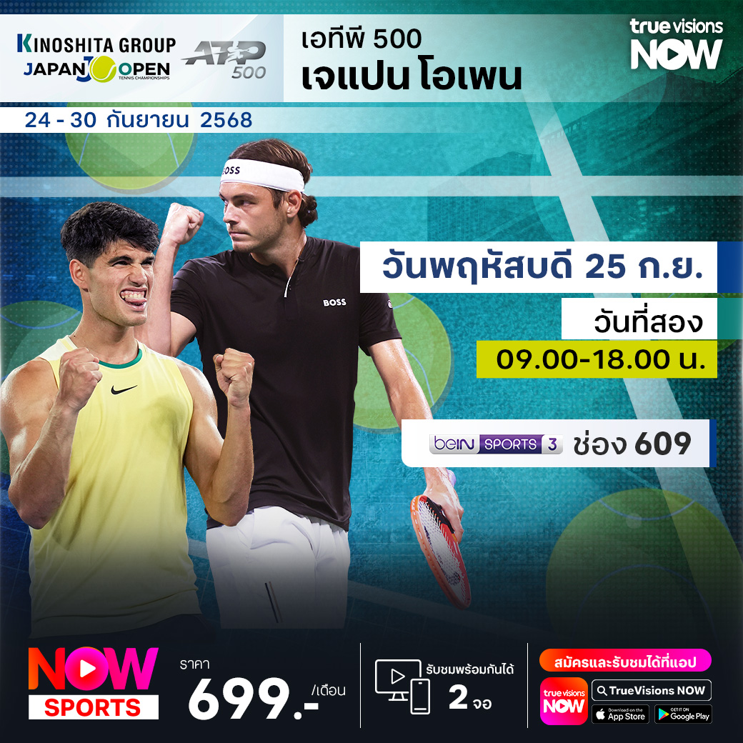 เทนนิสชาย เอทีพี ทัวร์ เข้าสู่ช่วงการแข่งขัน Asian Swing สัปดาห์นี้พบกับรายการใหญ่ที่กรุงโตเกียว ประเทศญี่ปุ่น กับรายการ เจแปน โอเพ่น นำโดย คาร์ลอส อัลคาราซ แชมป์แกรนด์แสลม 2 รายการในปี 2025 ร่วมลุ้นกันว่าใครจะคว้าแชมป์รายการนี้ไปครอง ชมสด ครบทุกรอบ ที่ ทรูวิชั่นส์