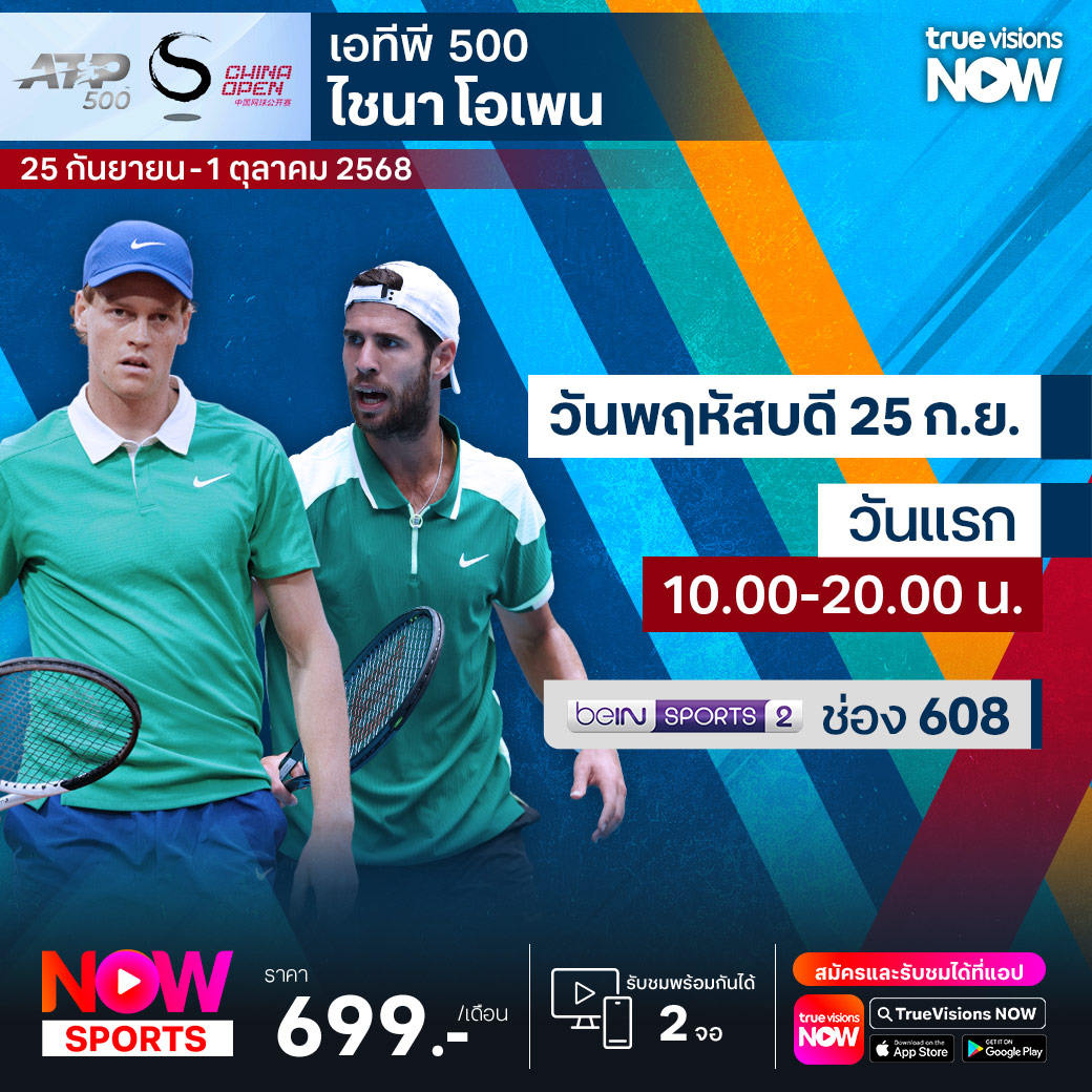 เทนนิสชาย เอทีพี ทัวร์ ช่วงการแข่งขัน Asian Swing ในสัปดาห์นี้มีรายการใหญ่อีกรายการที่กรุงปักกิ่ง ประเทศจีน กับรายการ ไชน่า โอพ่น นำโดย ยานนิค ซินเนอร์ แชมป์แกรนด์แสลม 2 รายการในปี 2025 ร่วมลุ้นกันว่าใครจะคว้าแชมป์ไปครอง ชมสด ครบทุกรอบ ที่ ทรูวิชั่นส์