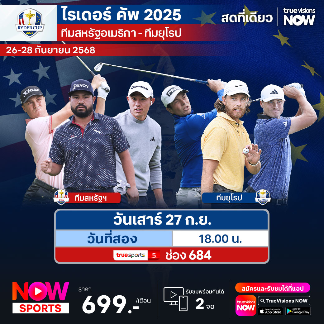 สัปดาห์นี้ แฟนๆ กีฬากอล์ฟมีนัดสำคัญที่ต้องไม่พลาด กับทัวร์นาเมนต์แห่งศักดิ์ศรีของ 2 ทวีป ที่เปิดศึกกันมาอย่างยาวนานในเดอะ ไรเดอร์ คัพ 2025 ทีมสหรัฐอเมริกา นำโดยกัปตันทีมอย่าง คีแกน แบรดลี่ย์ มุ่งมั่นแย่งแชมป์กับทีมยุโรปที่มี ลุค โดนัลด์ เป็นกัปตันทีม ที่สนาม เบธเพจ แบล็ค, นิวยอร์ค ชมสด เอ็กซ์คลูซีฟ ครบทุกแมตช์ ที่ ทรูวิชั่นส์