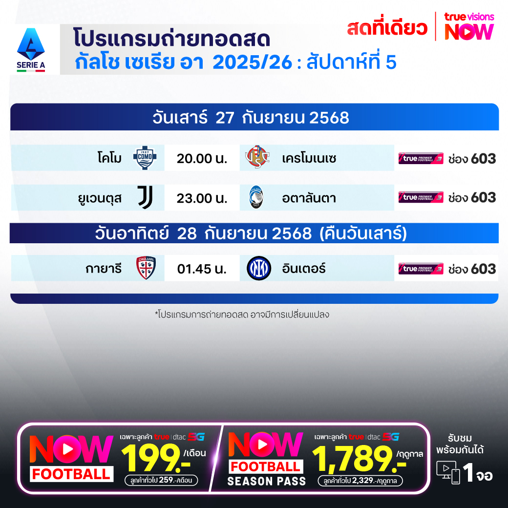 Como vs Cremonese เวลา 20.00-22.00 ทางช่องTPF 3(603)