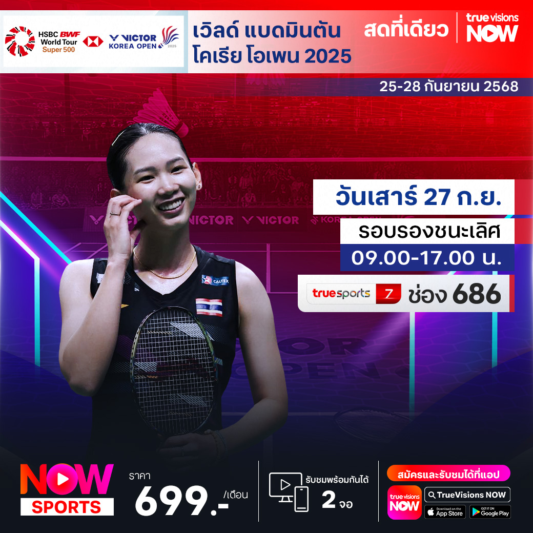 แบดมินตัน บีดับเบิ้ลยูเอฟ ฤดูกาล 2025 สัปดาห์นี้ ย้ายสังเวียนกันมาสู้กันที่แดนกิมจิ กับรายการที่แฟนๆ ชื่นชอบ โคเรีย โอเพ่น ที่สังเวียน ซูวอน ยิมเนเชี่ยม ในซูวอน ประเทศเกาหลีใต้ ส่งใจเชียร์ "หมิว" พรปวีณ์ ช่อชูวงศ์ สู้สุดใจเพื่อคว้าชัยชนะเหนือคู่แข่งและคว้าแชมป์ให้ได้ ชมสด ที่ ทรูวิชั่นส์