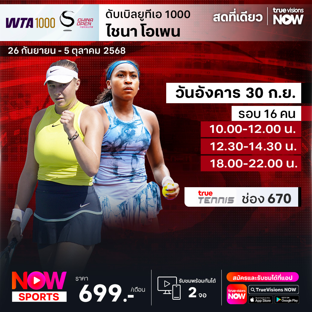 เทนนิสหญิง ดับเบิ้ลยูทีเอ ทัวร์ สัปดาห์นี้พบกับรายการใหญ่ที่สุดในทวีปเอเชีย ในรายการ ไชน่า โอเพ่น ที่กรุงปักกิ่ง ประเทศจีน นำโดยนักเทนนิสหญิงชื่อดังอย่าง อารีนา ซาบาเลนก้า และ อิกา ซิออนเทค ร่วมลุ้นกันว่าใครจะคว้าแชมป์รายการนี้ไปครอง ชมสด ครบทุกรอบ ที่ ทรูวิชั่นส์