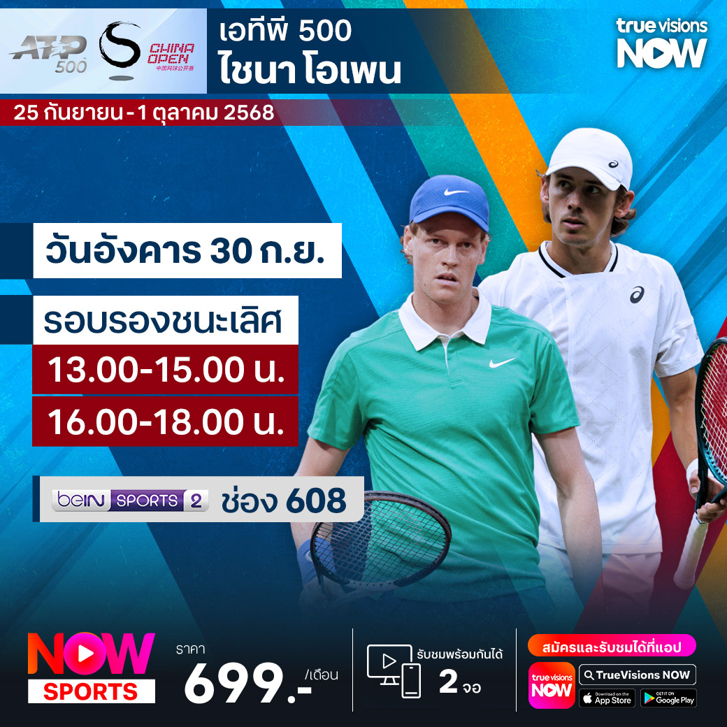 เทนนิสชาย เอทีพี ทัวร์ ช่วงการแข่งขัน Asian Swing ในสัปดาห์นี้มีรายการใหญ่อีกรายการที่กรุงปักกิ่ง ประเทศจีน กับรายการ ไชน่า โอพ่น นำโดย ยานนิค ซินเนอร์ แชมป์แกรนด์แสลม 2 รายการในปี 2025 ร่วมลุ้นกันว่าใครจะคว้าแชมป์ไปครอง ชมสด ครบทุกรอบ ที่ ทรูวิชั่นส์