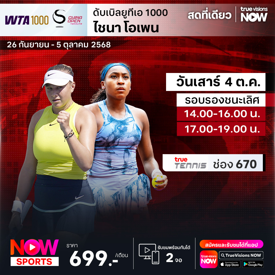 เทนนิสหญิง ดับเบิ้ลยูทีเอ ทัวร์ สัปดาห์นี้พบกับรายการใหญ่ที่สุดในทวีปเอเชีย ในรายการ ไชน่า โอเพ่น ที่กรุงปักกิ่ง ประเทศจีน นำโดยนักเทนนิสหญิงชื่อดังอย่าง อารีนา ซาบาเลนก้า และ อิกา ซิออนเทค ร่วมลุ้นกันว่าใครจะคว้าแชมป์รายการนี้ไปครอง ชมสด ครบทุกรอบ ที่ ทรูวิชั่นส์