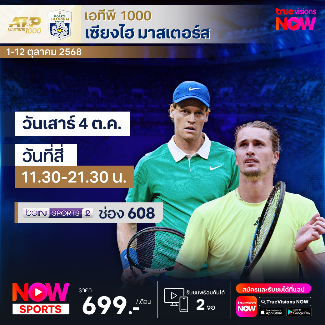 เทนนิสชายรายการใหญ่ที่สุดในทวีปเอเชียกลับมาแข่งขันอีกครั้ง ในรายการ เอทีพี เซียงไฮ้ มาสเตอร์ส ซึ่งถือว่าเป็นรายการสูงสุด โดยเป็นรองแค่การแข่งขันแกรนด์สแลมเท่านั้น บรรดานักเทนนิสระดับโลกเข้าร่วมการแข่งขันอย่างคับคั่ง ร่วมลุ้นกันว่าใครจะคว้าแชมป์รายการใหญ่ที่สุดบนทวีปเอเชียไปครอง ชมสด ครบทุกรอบ ที่ ทรูวิชั่นส์